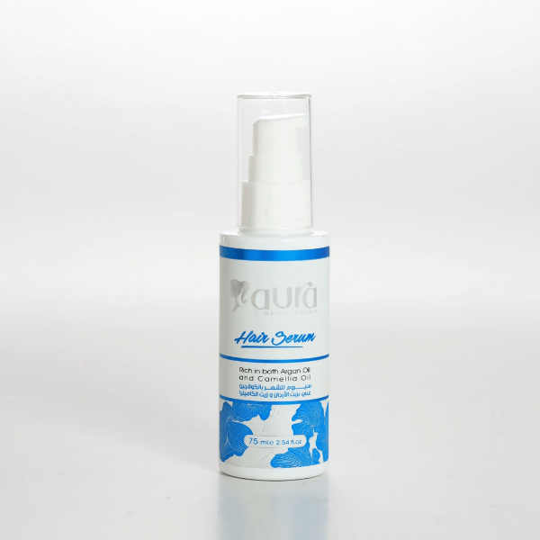 Aura hair serum rich with Argan oil, coconut oil, caviar extract for moisrizing and repair splite ends.